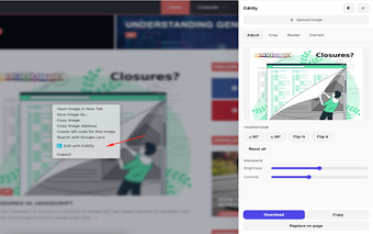 Editify adalah ekstensi untuk Chrome yang memungkinkan pengguna mengedit gambar secara langsung di halaman web. Dengan antarmuka yang bersih dan intuitif, pengguna dapat melakukan berbagai fungsi pengeditan seperti memotong, mengubah ukuran, dan mengonversi format gambar tanpa perlu meninggalkan tab yang sedang dibuka. Ekstensi ini menawarkan opsi untuk mengedit gambar yang ada di halaman atau mengunggah gambar dari perangkat pengguna, memberikan fleksibilitas dalam pengeditan.